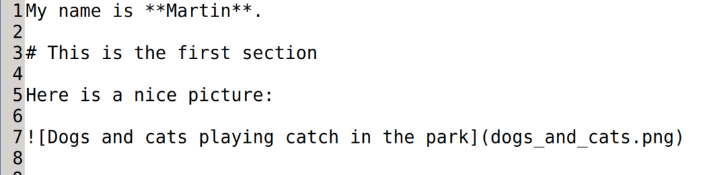 Note the empty line before the start of a new heading; it is required for our Markdown file to be processed properly.